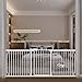 【Durable and Safety】 white and black wide metal dog gate is made of thick double carbon steel pipe which is 0.047" thick outer frame steel + 0.47" diameter thick reinforced round pipe,make a safe protective baby gate. The spacing between the round tubes is only 2.08" which is also a perfect choice as a pet gate, as it can effectively restrict the entry and exit of pets. After manual testing, the toddler gate for door can withstand 180 pounds of pull.