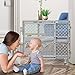 👶【5-in-1 Metal Gate】-This 5 panels baby safety playpen allows you to dismantle and adjust the angle quickly (such as enclosed,straight, U-shaped, L- shaped, or Z- shaped)to section off an independent safe play area for children and pets at any time.You can put it at home, kindergarten, pet shop and other different occasions to keep children and pets away from danger of fireplaces, grills, wide barrier, wood burners, doorway, stairs, Christmas tree, etc.