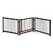 SPECIFICATIONS: 3-panel wood dog gate with rich walnut finish and two-way swing door stands 24” tall and spans openings up to 76”.