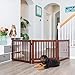 SIMPLE & STURDY: This Convertible Wooden Dog Gate is a Pet Fence, Room Divider, and Pet Pen All In One. Designed with an Attractive Wood Finish and Sturdy Non-Slip Rubber Feet, The Pet Gate.