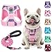 🐶No Pull, No Choke Dog Harness---The double fixing method of hook and loop fastener and buckle, the sturdy double D ring provides you with two choices of traction for safer dog walks. its vest-like design distributes the pressure of the leash evenly across the chest and shoulders to prevent choking or neck strain, perfect for dog training or dogs who tend to pull.