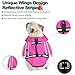 ☑ Unique Wings Design, adjustable nylon straps, quick-release buckles, heavy-duty yet more comfortable magic sticker fastening system around the belly, D-ring hook is perfect for dog leash to prevent your dog from running away