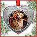 NO LONGER BY MY SIDE, FOREVER IN MY HEART. This attractive Christmas ornament would make a perfect Pet Sympathy Gift. SIZE: 3.5"W x 3.25"H, Holds a 2.25" Photo, Red ribbon for hanging.