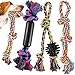 DOG PULLING TOYS FOR INDOOR & OUTDOOR: Dog rope toys with plenty of uses, comes in 5 different varieties that offer to fetch and tug-of-war games, ideal gift for your pup. Whether at home or outdoors, rope toys with handles are perfect for dog to play with you or their friends. Using them as a puppy tooth floss cleaning toys, keep dental hygiene. All adopted natural cotton fibers, tightly hand-knotted, safe and washable.