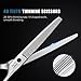 BASIC FEATURES - Right-handed pet grooming scissors trim pet's hair with sharp razor edge blade and hand-sharpened thinning edge. The scissors measure 7.5 inches with cutting blades that measure 3.7 inches. The dog thinning shear contains 48 teeth on one blade and gives 25-30% thinning rate and works well on heavy duty grooming cuts.