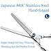 Crafted from japanese 440C stainless steel with hardness reaching 60–62 HRC for ultimate sharpness and durability, convex edge and hollow-ground blades for extremely smooth cutting, great dog hair scissors for everyday grooming