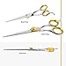 DESIGN & ERGONOMIC- The pet grooming experience is made comfortable with the sleek design and ergonomic features of these scissors. The shiny polished finish, gold accent screw and plate, and removable comfort rings ensure a great fit, while the well-designed finger holes makes trimming easy on your hands and wrist.
