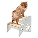 CHARMING 2 STEP STOOL - Low-profile wooden stair ladder features two natural color wood steps set into a sturdy, white wooden frame, embellished with bone and paw print cut-outs.