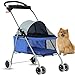 Easy to Fold and Store: This four-wheel cat and dog jogger features a simple one-hand folding mechanism; Just flatten it down for compact storage in closets, car trunks, or planes