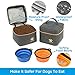 Our portable food and water carrier for dogs comes with 2 dual-use collapsible dog bowls. Slow feeder food bowl that's better for digestion and collapsible dog water bowl travel