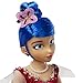 A vibrant cempasúchil flower and rose headband with streaming ribbons completes Barbie doll's gorgeous look.
