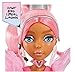 MERMAID HAIR: Harmonique has beautiful, premium, light pink hair styled in a bubble ponytail with two loose curly fuchsia tendrils.