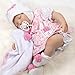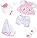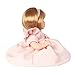 7-Piece Realistic Baby Doll Set. Comes with pink and white dress with llama pockets, white bloomers, wooly llama cap with matching booties, magnetic pacifier, and white velour blanket.