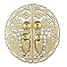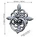 The Baphomet devil takes the form of a Horned God, as portrayed by the sculpture. A dark ghastly skull with large enigmatic horns is set against a lace filigree backdrop. The door knocker sculpture is grandeur in size weighing 2 pounds. It will be a stunning door knocker whether indoors our outdoors.