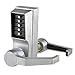 FUNCTION: Commercial lever door knobs with locks from CLG HARDWARE are available for specific entrances. This "Storeroom Function" variety is commonly used in storerooms and mechanical rooms. When the door is closed, it is always locked (rigid) from the outside and requires a key to open. Door is always open from the inside for emergency egress.