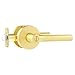 Superior Quality: Uniquely crafted round shaped door lever with heavy duty constructions, made of high quality zinc alloy & stainless steel, satin brass finished, sleek door lock confirm with ANSI Grade 3 Security, Exceeds 200,000 cycles.