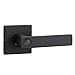 Matte black Tustin door lever featuring SmartKey Security, which protects against advanced break-in techniques and allows you to re-key your lock yourself in seconds