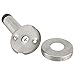 Size information: stainless steel wall door bumper has a 13/16 inch projection, the outer diameter of gray rubber bumper is 1-1/8 inch, and the stamped steel cover with a brushed stainless-steel finish is 2-5/16 inch in outside diameter