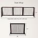 Extra Wide Gate: Open Size: 82"W x 0.7"D x 24"H; Fold size: 20.4"W x 2.7"D x 24"H; This versatile dog fence could be used as Pet Fence, Room Divider and Pet Pen All In One; also could be used in anywhere like doorways, hallways, entryways, open spaces and bottom of stairs and so on.