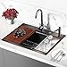 🍽️【5 Accessories】 Basket Strainer Drain Assembly, Drain Basket, Solid Wood Cutting Board, Scratch Resistant Mesh, Water Storage Cover. Five free kitchen accessories to give you more convenience in using the sink. All accessories are high quality products, please rest assured to use. Among them, the solid wood cutting board valued at 40$ is loved by the majority of customers. We offer a lifetime warranty and top-notch customer service, please contact us if you have any questions.