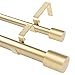 🌲Double Curtain Rods for Windows 36 to 72 Inch(3-6Ft): TANGWIN heavy duty double curtain rods include 1 set of front rod (1x37"x 1"fixed rod, 1 x 37.5"x 7/8"adjustable rod), 1 set of back rod (1x37"x 5/8"fixed rod, 1 x 37.5"x 1/2"adjustable rod), 2 x large finial, 2 x small finial, 3 x bracket, 6 x anchor, 6 x screw. Gold adjustable double curtain rods can extend from 36 to 72 inches, choose the right size curtain rods according to the length of your window.