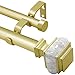 🌲Double Curtain Rods for Windows 72 to 144 Inch(6-12Ft): TANGWIN heavy duty double curtain rods include 1 set of front rod(1x50"x1"fixed rod, 1x50"x 7/8"adjustable rod), 1 set of back rod(1x 50"x 5/8"fixed rod, 1 x 50"x 1/2"adjustable rod), 2 x large finial, 2 x small finial, 3 x bracket, 6 x anchor, 6 x screw. Gold adjustable double curtain rods can extend from 72 to 144 inches, choose the right size curtain rods according to the length of your window.