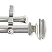 Steel rod in satin nickel finish with matching plastic decorative finials and mounting hardware