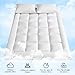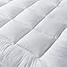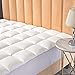 1.【Extra Thick & Luxury Comfort】:Brand new brushed microfiber top, adds double comfort and make you feel like you live in a 5 star hotel. Overfilled with supportive 3D snow down alternative fill, true Baffle box design, this new released pillow top mattress topper distributes weight evenly.