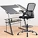 Sturdy and Durable: Our drafters chair with a heavy duty durable base that can support up to 250 lbs capacity of grown people. Workbench stool with backrest matches with other high quality office accessories and strictly meet BIFMA Standard to maximally ensure your safety. Comfortable arm cashier task chair can support your body on superior level. Extended height computer chairs are ideal for executive painters sitting work and draftsman artists who seek for all-day comfort.