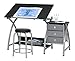 Substantial construction: Founded on a powder-coated steel frame in a black finish, this drawing table features a tempered glass tabletop and a CARB-Certified Phase 2 MDF side countertop for years of reliable use. The foam-padded stool is covered with quality PU leather and supported by metal legs, which can hold up to 120kg/265lb.