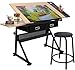 Table/stool set: This drafting table set includes a stool in the package, which features a sturdy construction of a well finished metal frame and color/style matching black PU-wrapped sponge padding round seat. Now enjoy the added comfort!
