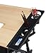 LARGE STORAGE SPACE: This black glass-topped drafting table desk features a host of compartments and trays underneath for holding all of your paints, pens, and other small accessories, ensuring all drawing tools are easy to reach when brilliant ideas pop up. There is a 24-inch slide-up pencil ledge that expands your available space and hanging drawers beneath the tabletop hold stationery and other supplies at hand.