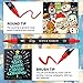 Unique Dual Tip Design: Each acrylic marker includes BOTH a 3mm Medium Tip and a 0.5-5mm Brush Tip. Dual tip design meets different coloring needs, the medium tip is great for large areas of painting and coloring, and the brush tip works well for painting, drawing, calligraphy, lettering and sketching.