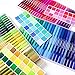 【DUAL TIP PENS】: Flexible fiber brush tip and extra fine tip in one marker, allows you to create medium or bold strokes by changing brush pressure and experience fine strokes with extra fine tip. Our tips are made of special fiber material which is wear-resistant,no branching and durable can use for a really long time.Ideal for kids and adults calligraphy, underlining, adult coloring books, journal hand lettering .