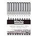 【Set of 10 Micro-pens】: This set contains 10 Black Multiliner pens with 0.2mm (005), 0.25mm (01), 0.3mm (02), 0.35mm (03), 0.4mm(04), 0.45mm (05), 0.5mm (06), 0.6mm (08), 2 Brush tips. Offering a variety of sizes for your needs, these black fine tip markers are ideal for drawing and writing,Its needle tip works well for artists, writers, and illustrators alike.
