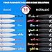 Medium Tip Metallic Marker Pens - Durable medium point creates bold marks and clean lines — great for writing, doodling, and drawing. Metallic pens for black paper, scrapbook, photo albums, arts and crafts, christmas cards, mug design, painting rocks, halloween pumpkin decorations. Easily mark light and dark surfaces with the bright, highly visible metallic finish of these metallic markers, adds sparkle embellishment to various craft works.