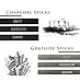 【Premium Drawing Accessories】:A variety of painting tools make your creation more convenient,The right art tools further enhance your drawing skills.These accessories include 4 willow charcoal,3 Blending Stump,3 charcoal sticks,3 graphite sticks,Metal Sharpener, plastic sharpener,Vinyl Eraser, Kneaded Eraser,Pencil Extender, Sandpaper Block, Artist Brush,water brush pen,rubber pen,marker,artists knife.