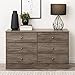 MODERN DRAWER DRESSER: Features 2 columns with 6 total full-size drawers as storage space while the profiled top, side moldings, curved kick plate, drifted gray laminate finish and coastal design complements existing decor