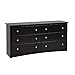 MODERN DRAWER DRESSER: Features 2 columns with 6 total full-size drawers as storage space while the profiled top, side moldings, curved kick plate, sleek black finish and new-age design compliments existing decor