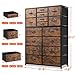 Fabric Drawer Dresser For Multi-Purpose Use. Quality rustic brown fabric drawers combine with sturdy wooden top, these gives this 12 drawer dresser for bedroom a simple but trending appearing. Manage all season clothes with this rustic brown dresser in closets or bedroom, use it as nursery dresser to stock diapers or powdered milk, load sundries close to doors or near the entryway, or prepare towels and spare slippers for guests.