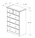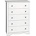 Product 2: CONTEMPORARY DRAWER CHEST: Features 5 full-size drawers as storage space while the profiled top; side moldings; scalloped kick plate; clean white finish and timeless design compliments existing decor