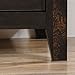 Product 1: Detailed with curved top edges, side moldings, a scalloped base panel and solid dark pewter knobs