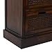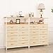 FEATURES RECTANGLE STORAGE UNIT: Rectangular side chest features a rattan weaving inspired drawers with cut out handles and two pullout dresser with round knobs for a mix of classic and refine style