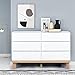 【CHIC DESIGN】: With elegant frame-paneling design, sleek white finish, brass nickel handle and tapered solid wood legs, IKENO white 6 Double Drawers Dresser easily adapts to your home style, making your room more fashionable and brighter.