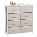 Fabric Drawer Dresser Built with High Quality. All drawers of this dresser for bedroom are made of wear-resisting, long-lasting color fabric, no more worry about scratches, safe and reliable Made of durable metal frame, this bedroom dresser with two X shape lacing bars ensures a longer service life. A heavy duty wood top combines with the metal structure, prevents this dresser & chest of drawers from shaking or wobbling.