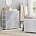 【STABLE AND SAFETY FABRIC DRESSER】Upgraded X-cross bars behind of dressers provides additional stability and safety,allowing you to push and pull the drawer without the drawer falling out. Dressers & chests of drawers equipped with anti dumping device to avoid potential safety hazards to children at home.With adjustable feet present in the tall dresser you won’t have to worry about the stability of the tabletop nightstand even on uneven floors.