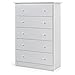 STURDY STRUCTURE: Consisting of premium MDF wood and quality hardware, this modern 5 drawer dresser features superior sturdiness and long lasting durability. Each lower drawer holds up to 25 lbs. Overall measurements: 15.7” D x 27.2” W x 37” H
