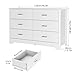 【Spacious Storage Space】With 6 deep double drawers with interior size 19.09"W x 12.44"D x 5"H, this white drawer dresser offers large amount of storage capacity to organize your overflows: 42+ shirts, 30+ dresses, 100+ socks, 24+ pants, ,60+ underpants etc. ( :)actually can store much more than the sample). And the spacious top board is perfect to display photos, bouquets, lamps and more. Overall size: 46.8"W x 15.6"D x 29"H