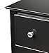 With 2 round brushed nickel knobs per drawer; nylon drawer slides with safety stops