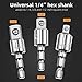 🔧【360° Rotatable Impact Driver Bit Set】360° Rotatable Hex Shank Socket to Bit Adapter 1/4" 3/8" 1/2" Impact Driver Adapter, with special spherical design, can evenly distribute the torque load in Larger surface area for improved performance, convenience and effort.